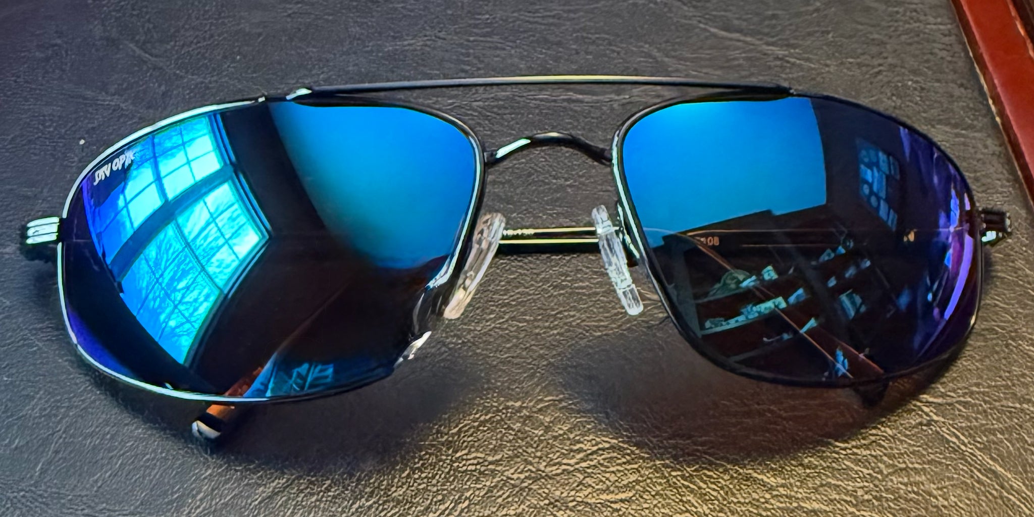 Desert Blue: Amber lenses with a blue flash mirror providing extra glare protection and our highest contrast lenses. Both brown and blue to the outside world providing an upscale unique look.