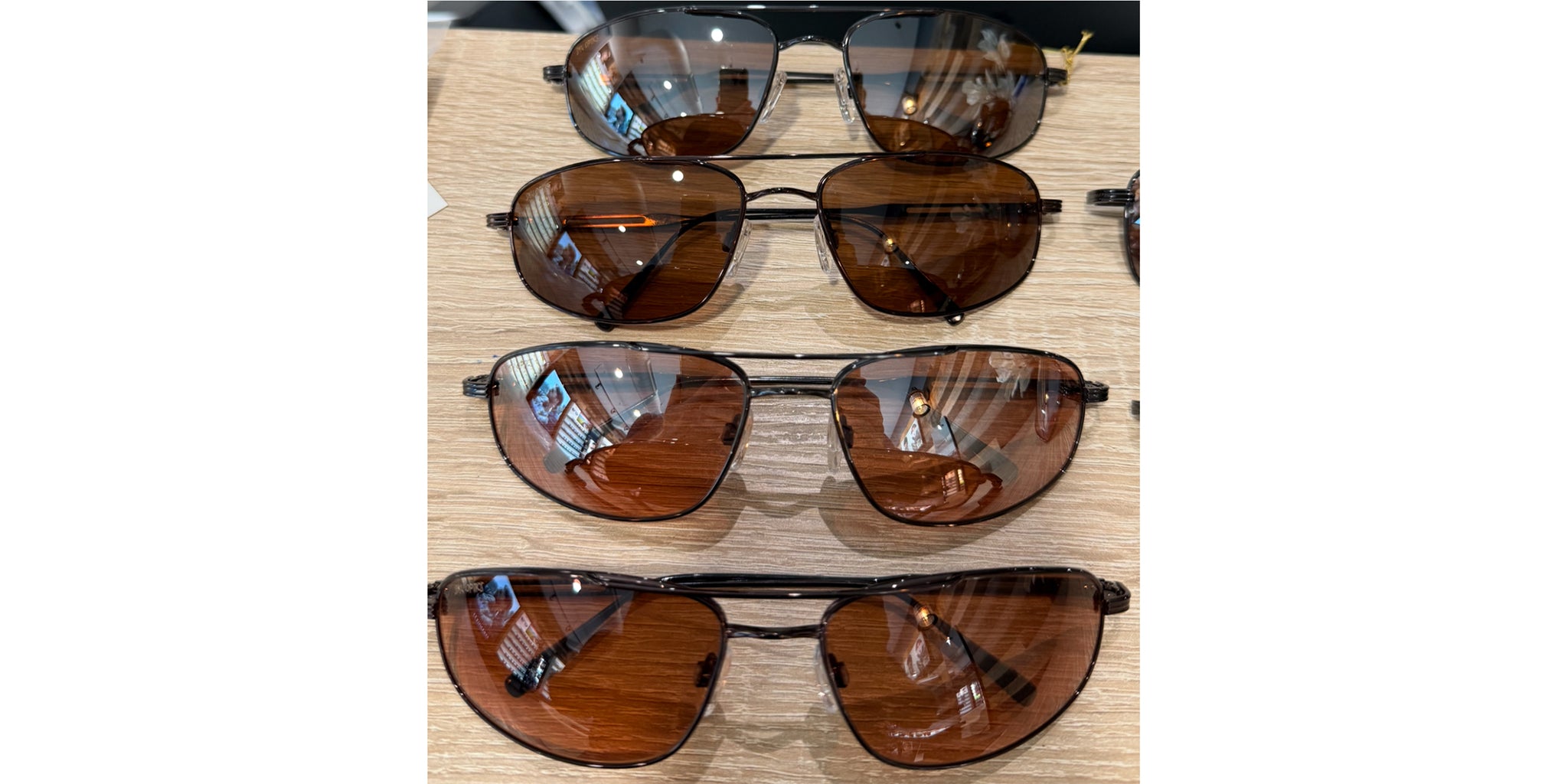 Amber/Amber Gradient with Silver Flash: Amber lenses with a silver flash mirror providing extra glare protection while looking stylish. Desert Blue: Amber Lenses with a Blue Flash Mirror providing extra glare protection and our highest contrast lenses. Both Brown and Blue to the outside world providing an Upscale Unique look.
