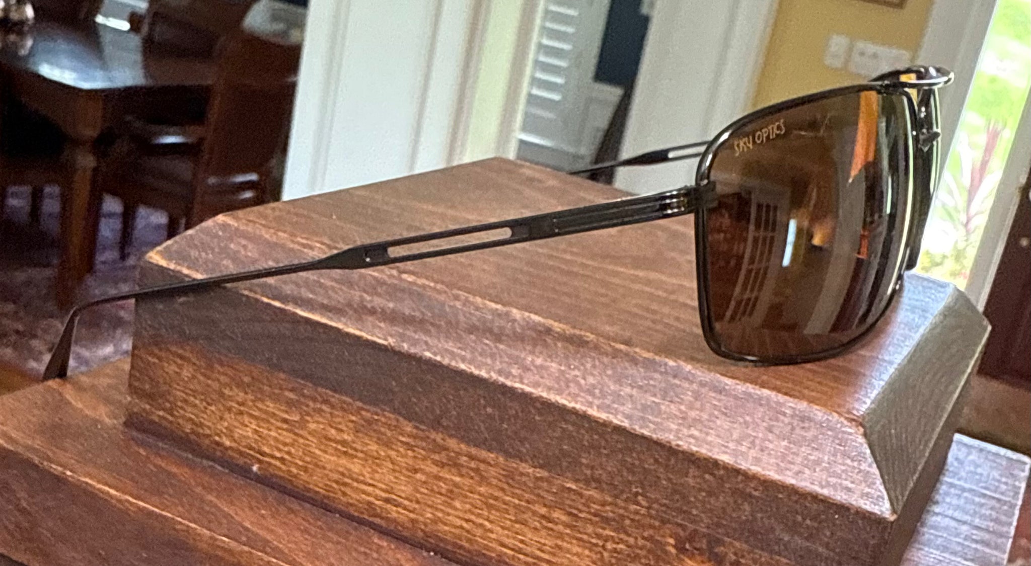Sky Optics Aerowire Sunglasses. Light-weight titanium frame with Mineral Glass lenses. Great balance, light on your nose, work great with all Headsets and Helmets. Latest in photochromic technology, which constantly lightens and darkens throughout the day to ensure you see every detail. The Aerowire will soon be the Most Popular Aviator Sunglasses and is Excellent for Driving.with upgraded soft silicone gel nose pads for a more comfortable fit and better nose grip. Professional Pilots who wear sunglasses most of the day prefer this modification.